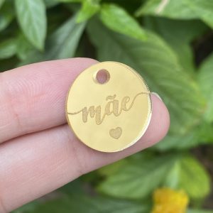 Pingente Tag Mini Círculo – Mãe – Acrílico Dourado