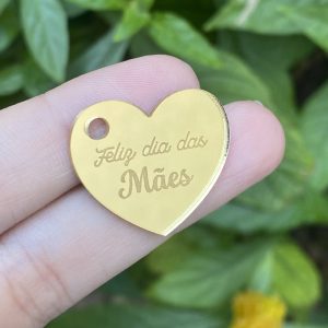 Pingente Tag Coração – Feliz dia das Mães – Acrílico Dourado