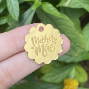 Pingente Tag Medalha – Melhor Mãe – Acrílico Dourado