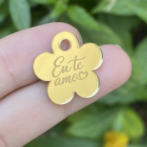 Pingente Tag Mini Flor – Eu te amo – Acrílico Dourado
