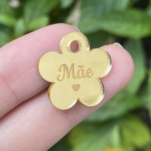 Pingente Tag Mini Flor – Mãe – Acrílico Dourado