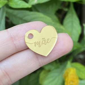 Pingente Tag Mini Coração – Mãe – Acrílico Dourado