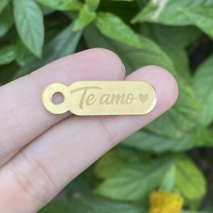 Pingente Tag Mini – Te amo – Acrílico Dourado