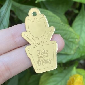 Pingente Tag Vasinho de Flor – Dia das Mães – Acrílico Dourado
